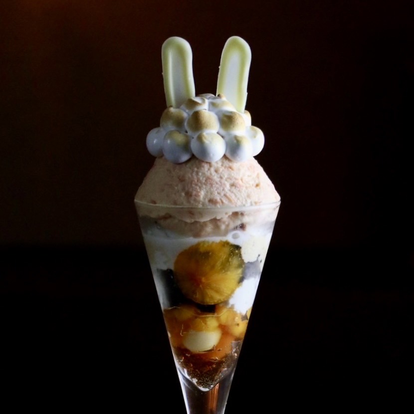 お団子に隠れるうさぎをイメージしたパフェでございます。