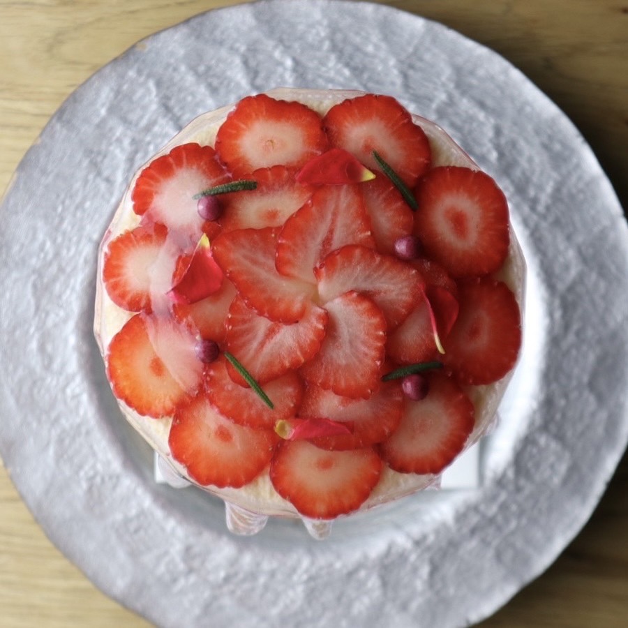 花束のようにあまおうを並べた上から、