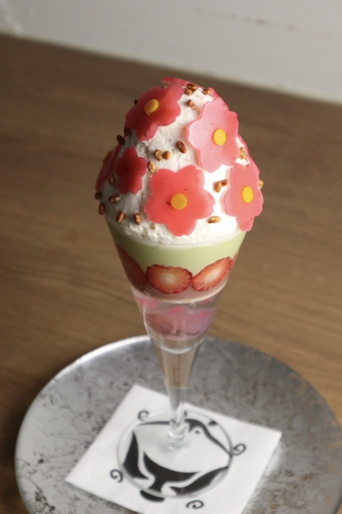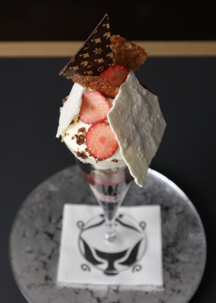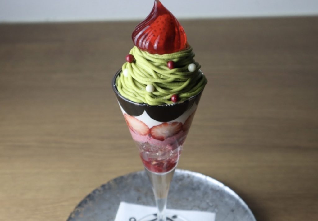チョコミントの味わいを楽しんで頂けるパフェでございます。