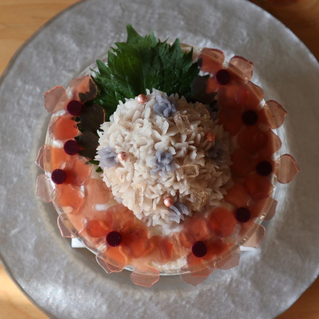 中心はブルーベリーのソルベと黒糖のおもちで