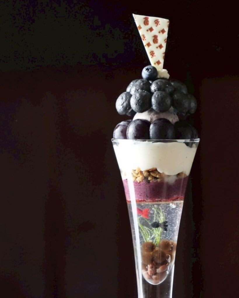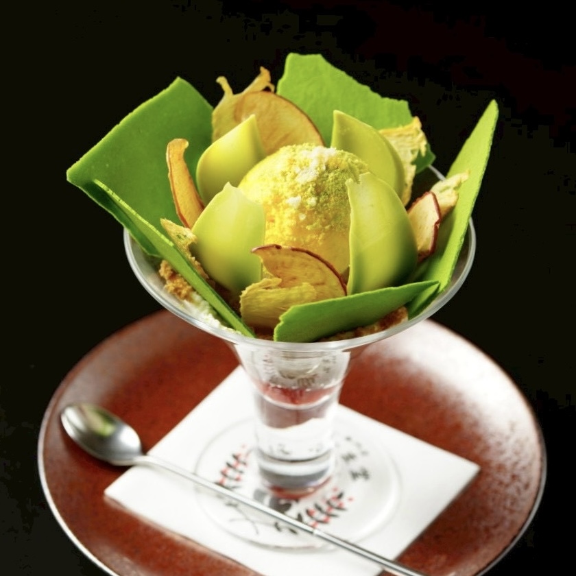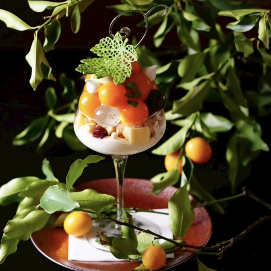 赤紫蘇ソルベのすっきりした酸味が引き立てます。