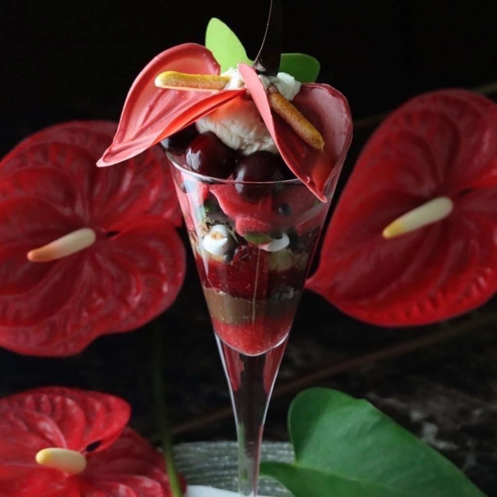 食感の変化をも感じられるパフェに仕上げました。