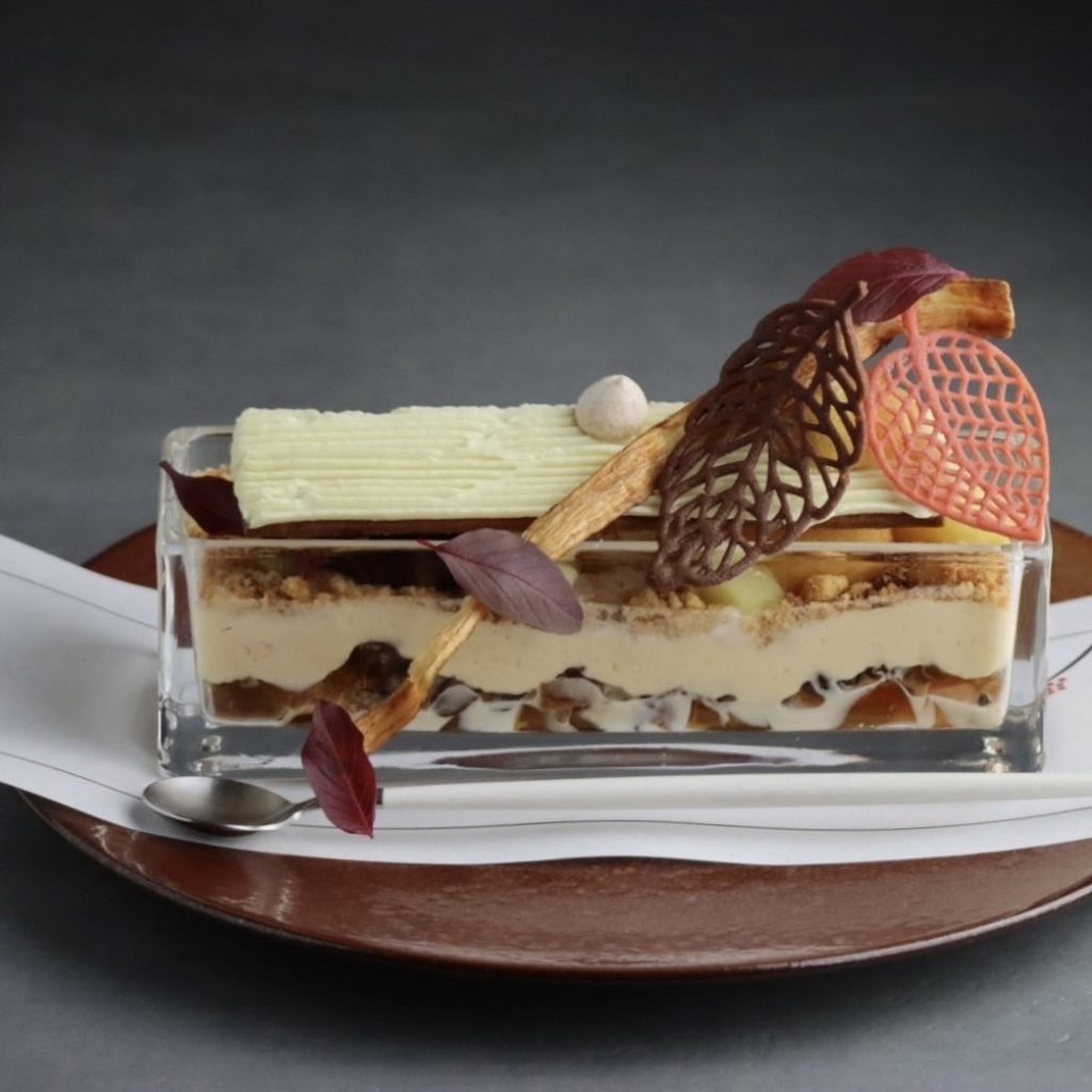 中には、爽やかな酸味のルバーブソルベや優しい甘さの紫芋クリーム。