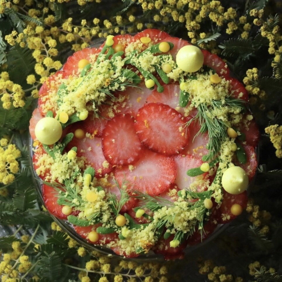 その上には、シャンパンのキリッとした味わいと苺の酸味が合わさったゼリーを飾りに。