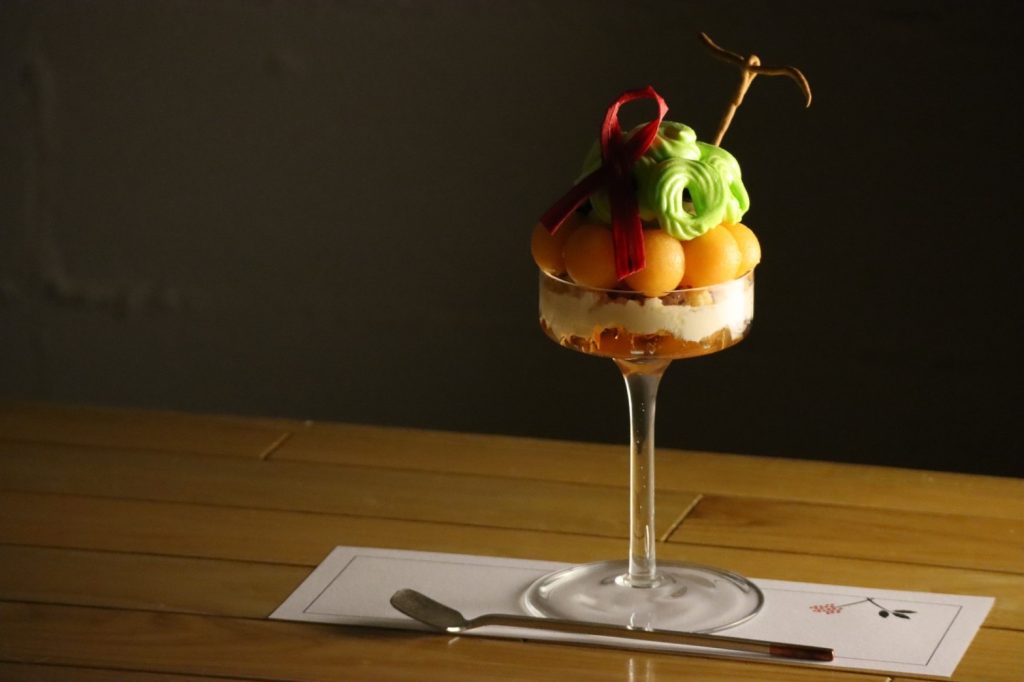 赤肉メロンを使用した季節のパフェの登場です。