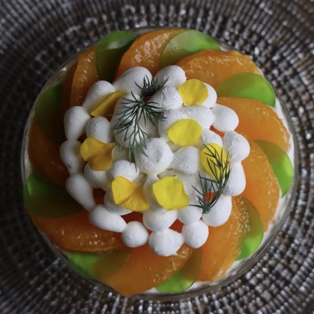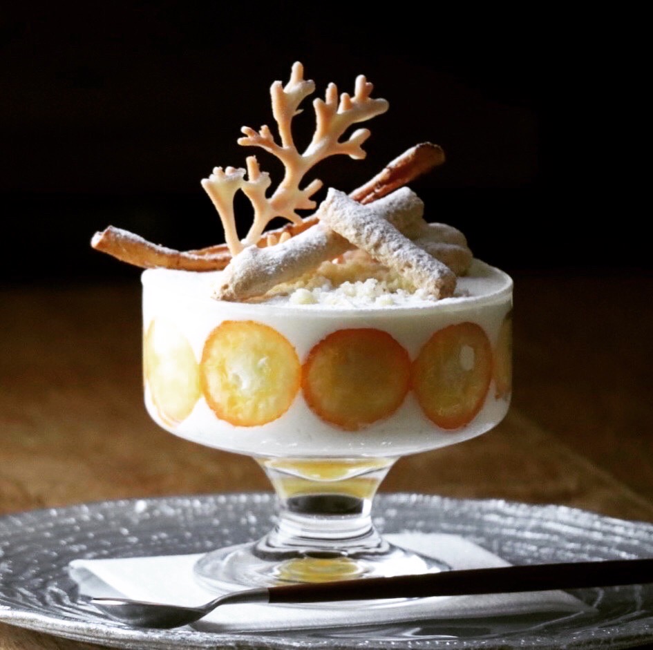 ほのかに甘い旬の金柑を現代のテクノロジーの様に進化したパフェで、驚きと笑顔を届けます。