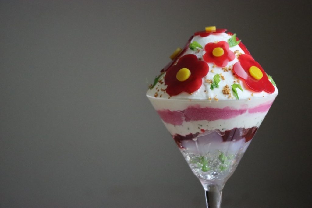山椒と発酵乳のソルベが爽やかなパフェの