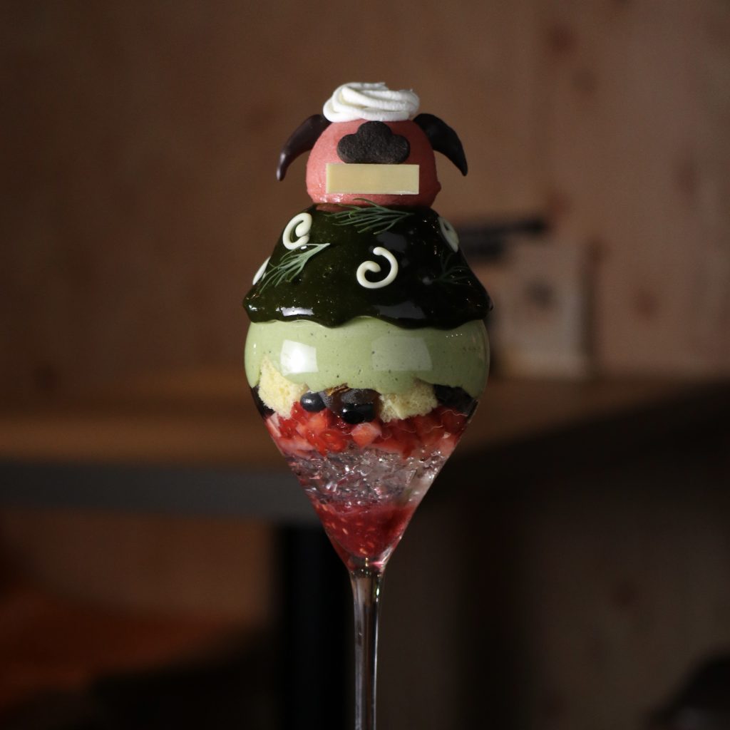 『 獅子舞パフェ〜唐草模様の胴幕餅〜 』