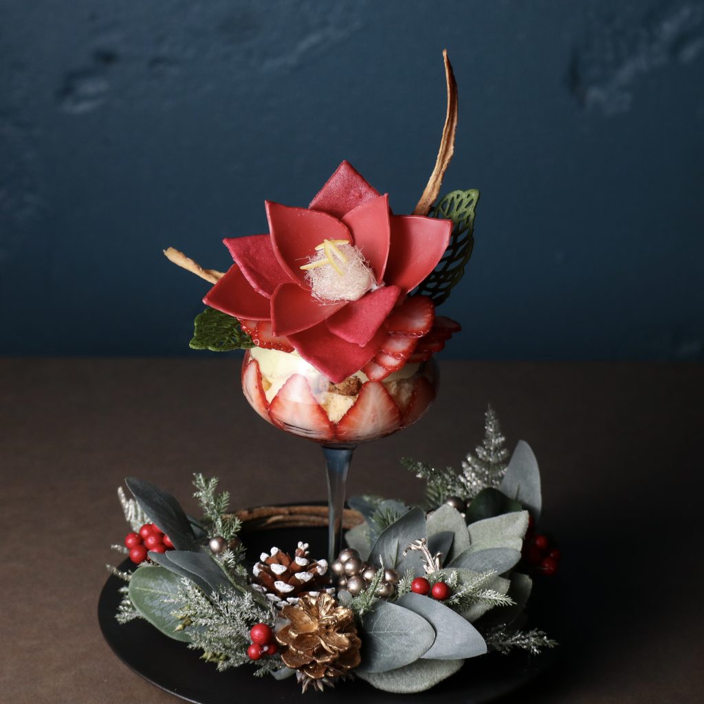 周りに散りばめた、桜チップで燻製したフロランタンでスモーキーな香りをお楽しみいただけます。