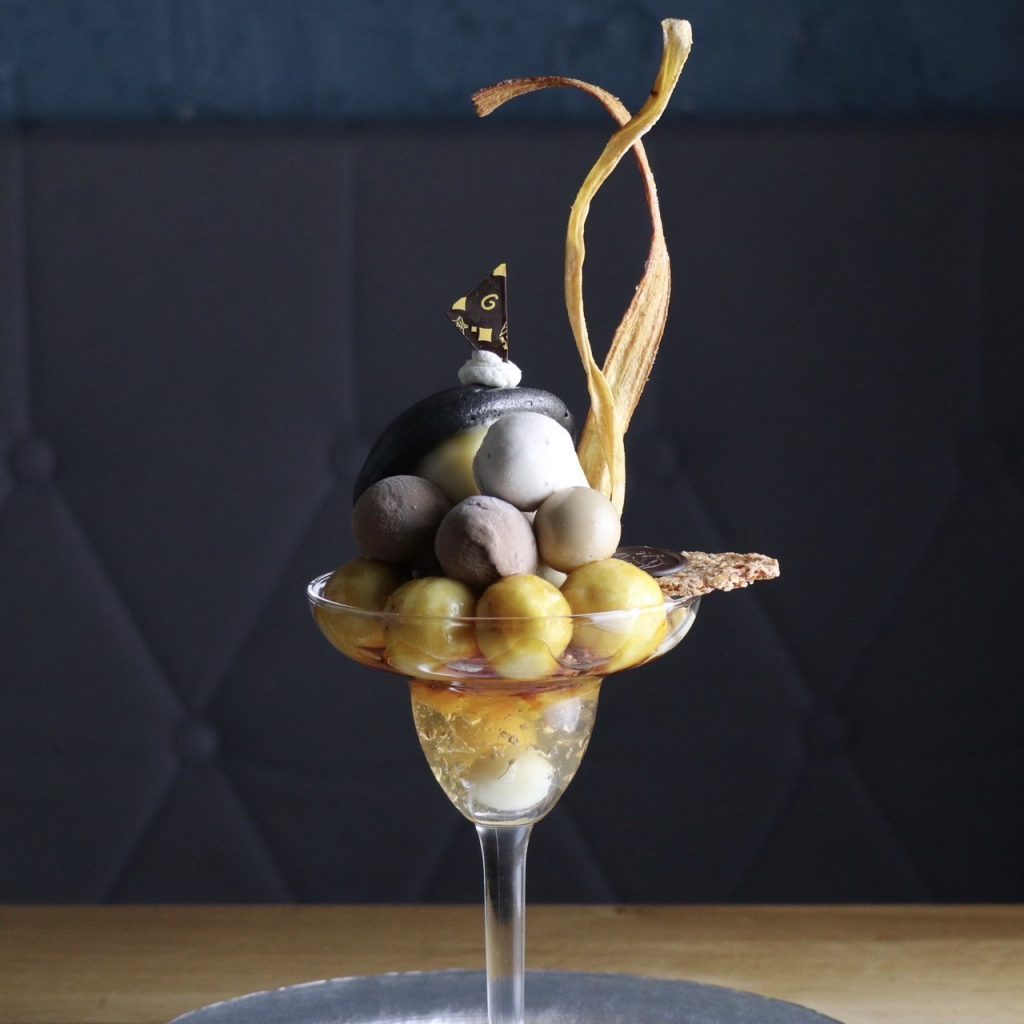 黒糖ジェラートやチョコレートの濃厚な甘さ合わせて