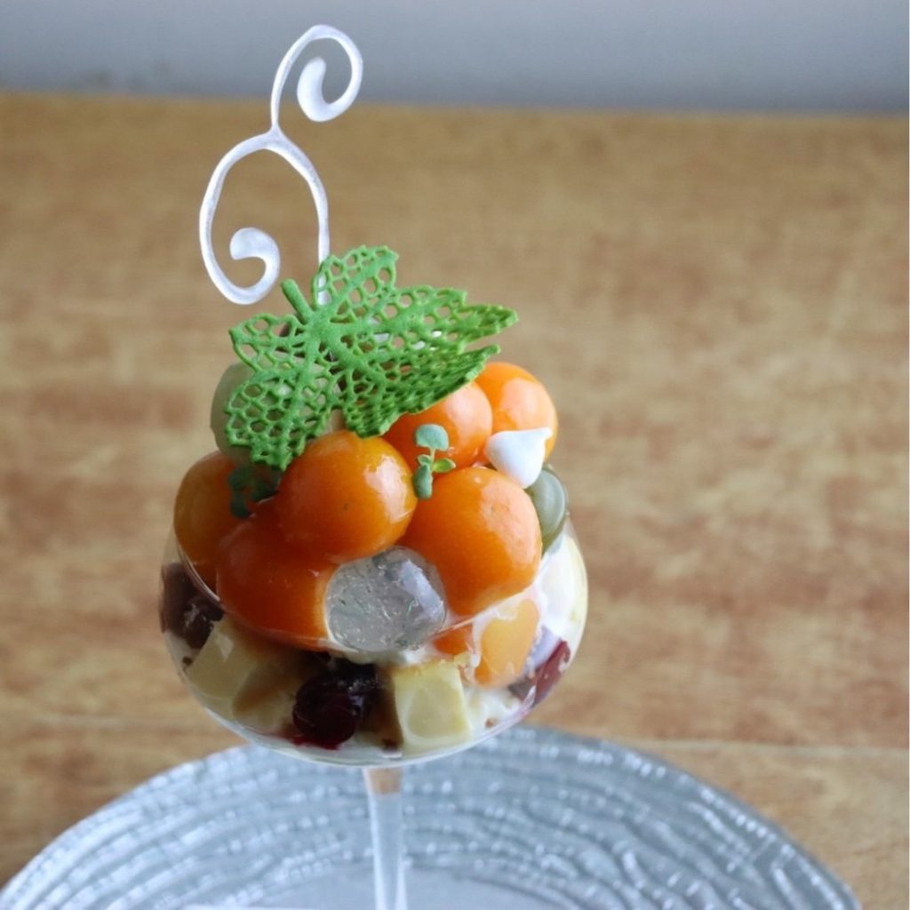スパイシーなクローブでコンポートした金柑を濃厚なチーズクリームやオレンジの香りが広がるコアントローカタラーナと合わせて