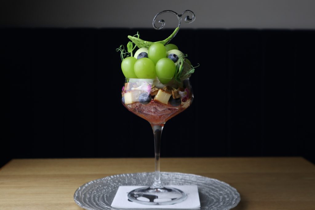 濃厚な甘味のピスタチオジェラートとアールグレイジェラート、爽やかな酸味のレモンソルベが旬のシャインマスカットと抜群の相性ですので、合わせてお召し上がり下さい。