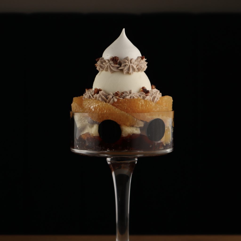 濃厚なチョコレートジェラートやクレームダンジュと甘酸っぱいさくらんぼの相性をお楽しみ下さい。