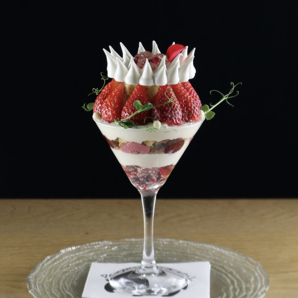 シャンパンジュレやグリオットムースで