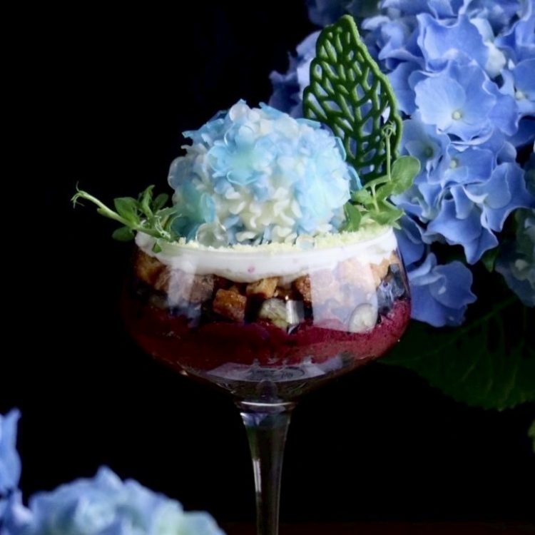 梅の花に合わせて紫蘇をレアチーズクリームや