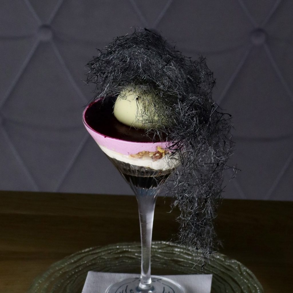 髪型をキリッとパッションフルーツのメレンゲで再現しております。