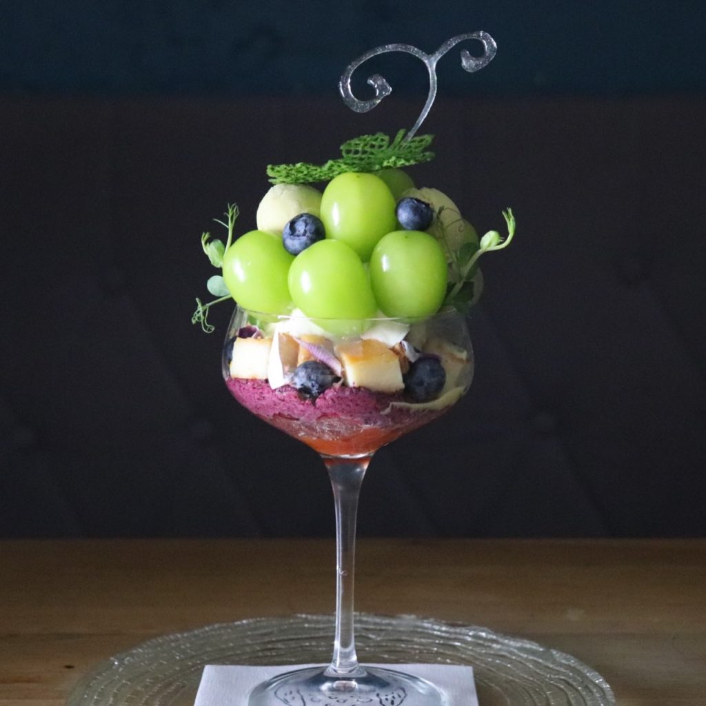 グラスの中には甘さだけでは無く、酸味の効いたカシスのソルベが無花果の甘みをひき立てます。