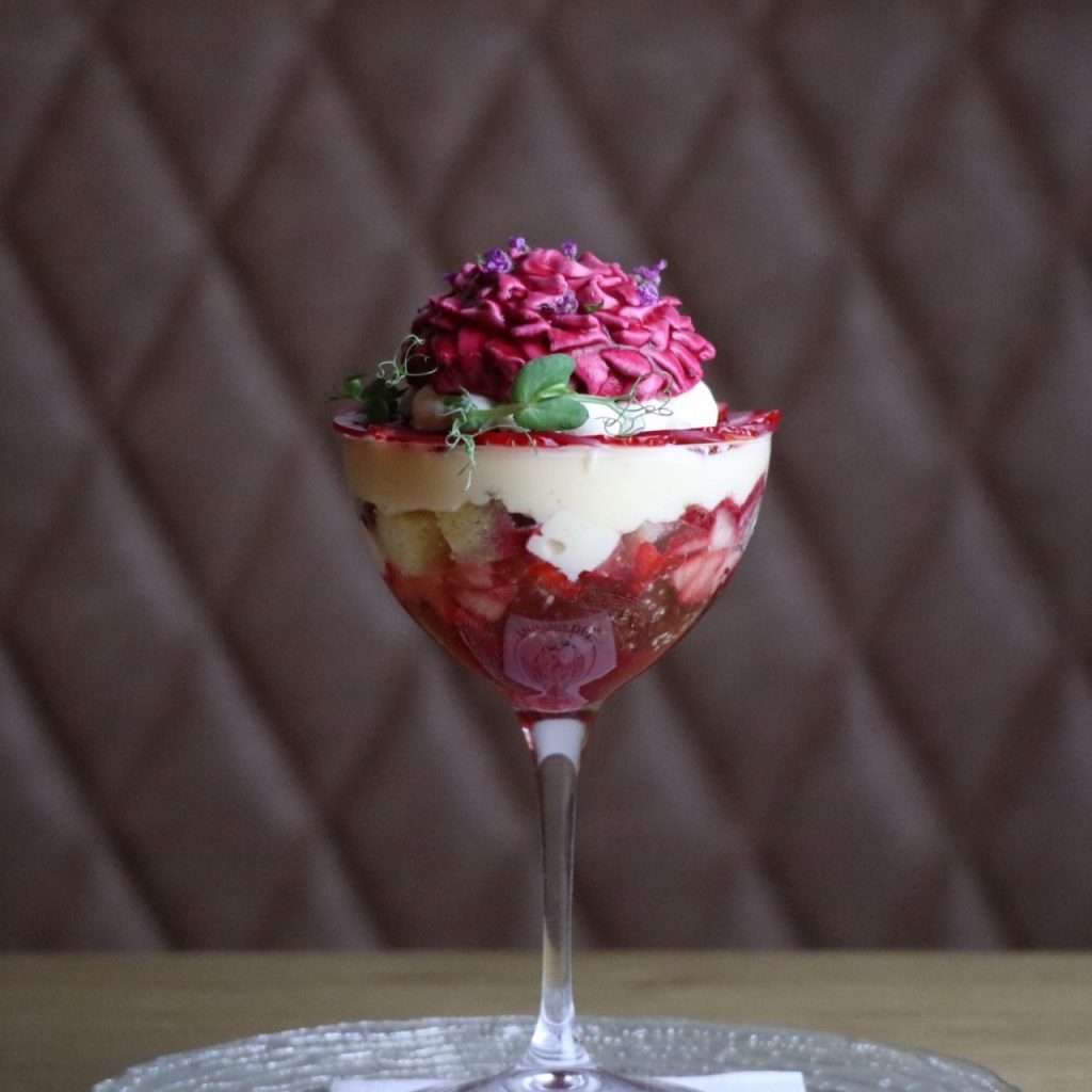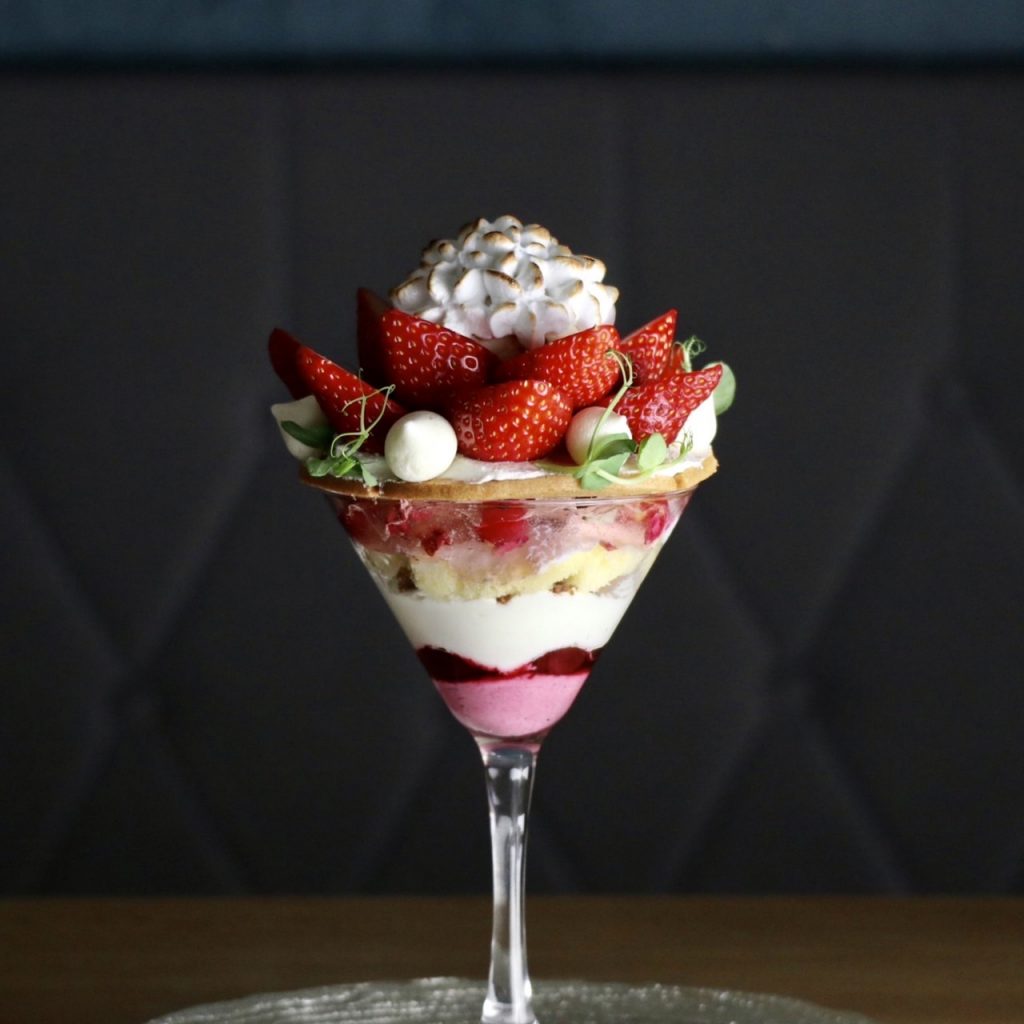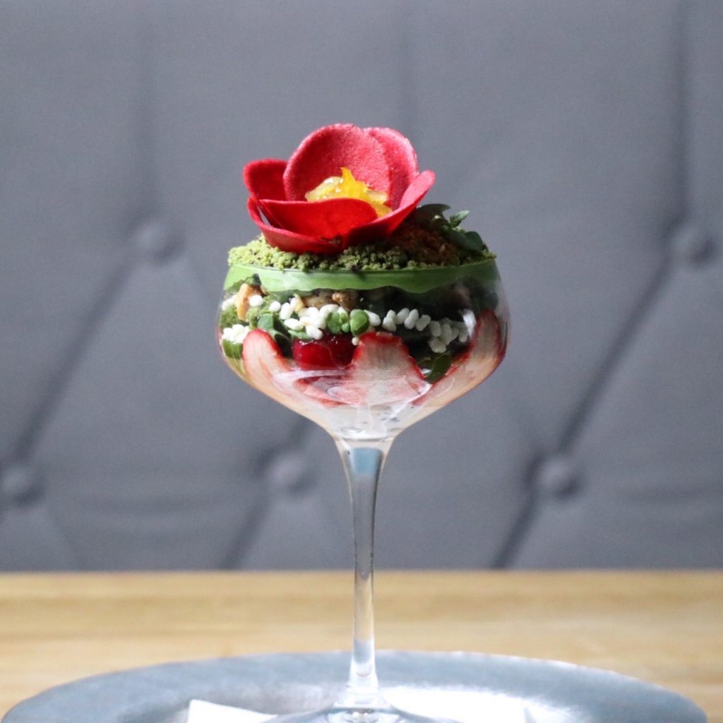 男山大吟醸ジェラートの爽やかな甘味とフランボワーズソルベの酸味が新鮮な苺と相性が良いので合わせてお召し上がり下さい。