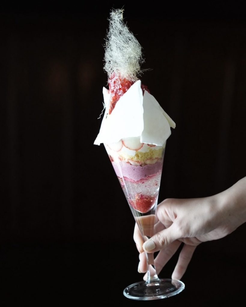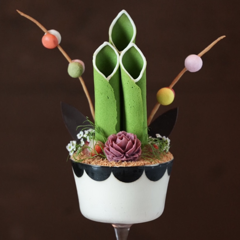 ほのかに山椒が香る抹茶ジェノワーズが、
