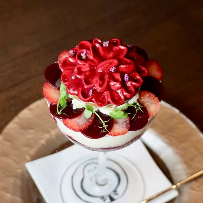 苺とグリオットの甘酸っぱさと薔薇の香りで