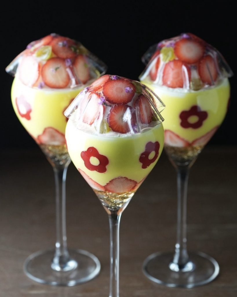 いち早く咲く梅の花を苺や寒天で